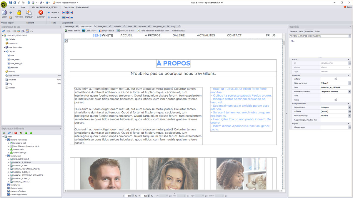 Pour commencer nous avons développé un nouvel élement appelé Panneau d'éléments Responsive.